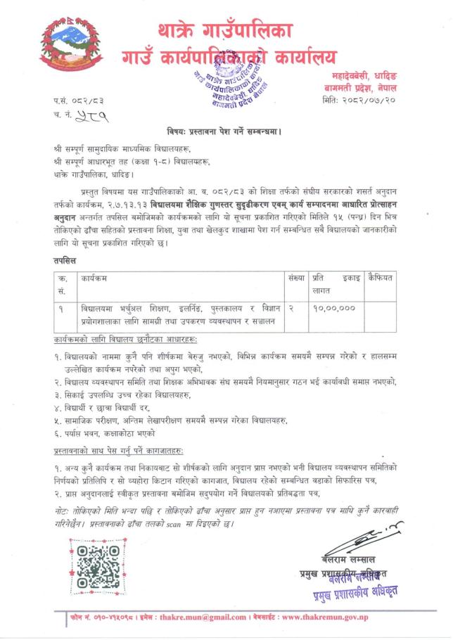 प्रस्तावना पेश गर्ने सम्बन्धी सूचना ।