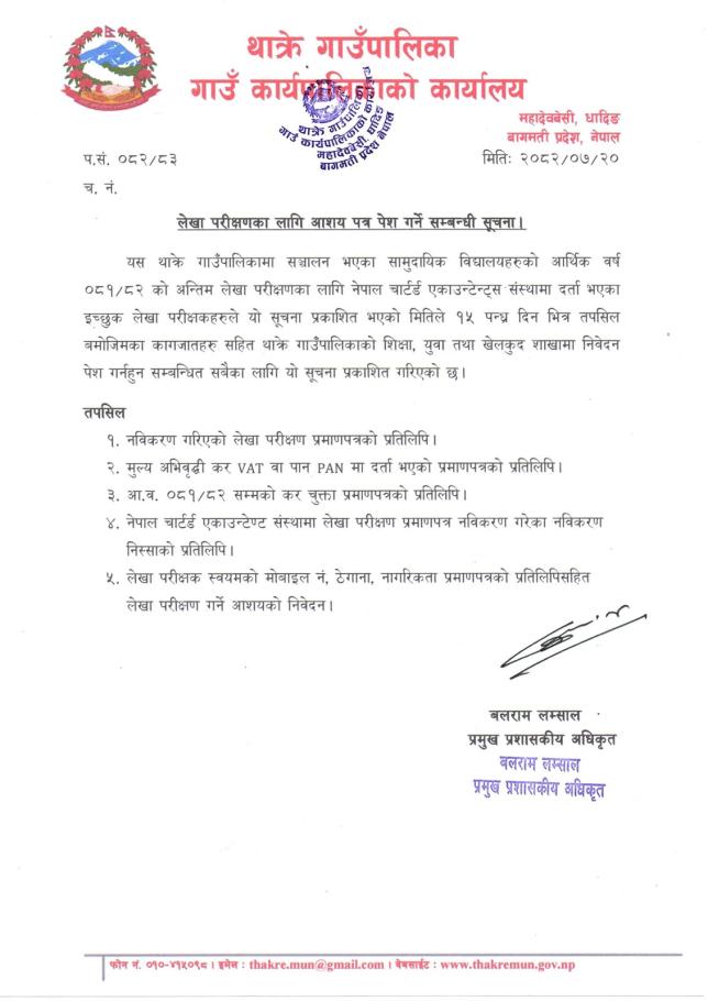 लेखापरीक्षणका लागि आशय पत्र पेश गर्ने सम्बन्धी सूचना ।