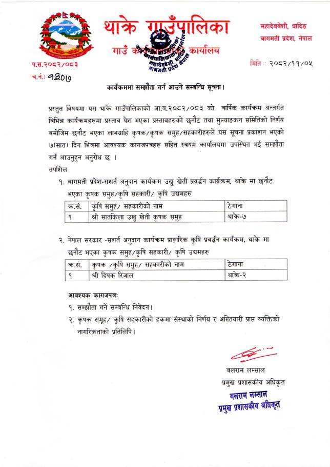 कार्यक्रममा सम्झौता गर्न आउने सम्बन्धी सूचना ।