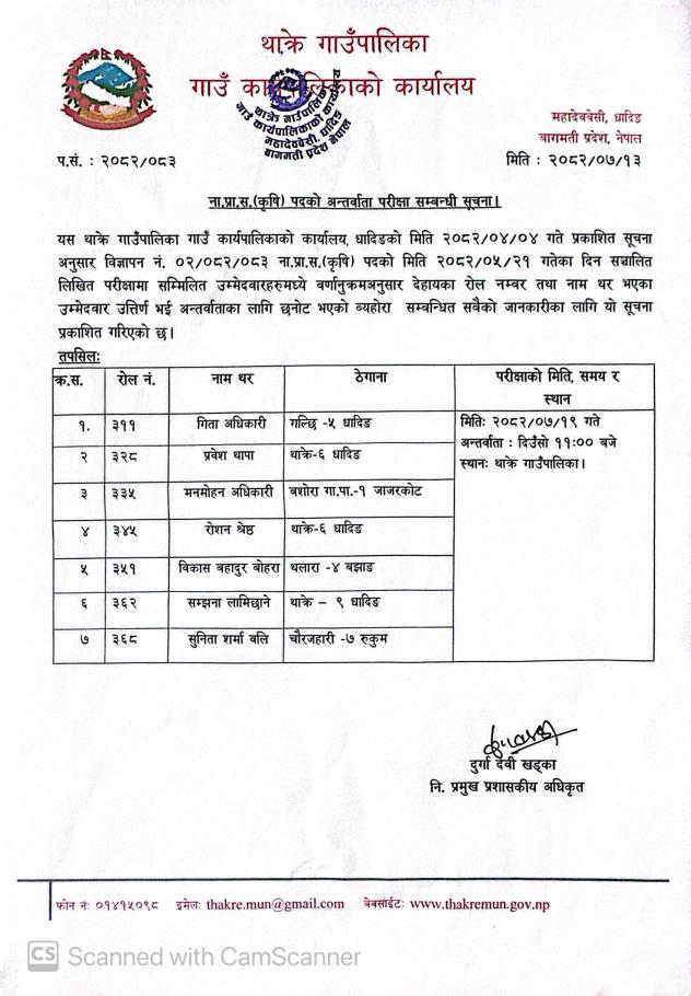 ना. प्रा. स.(कृषि) पदको अन्तर्वार्ता परीक्षा सम्बन्धी सूचना ।